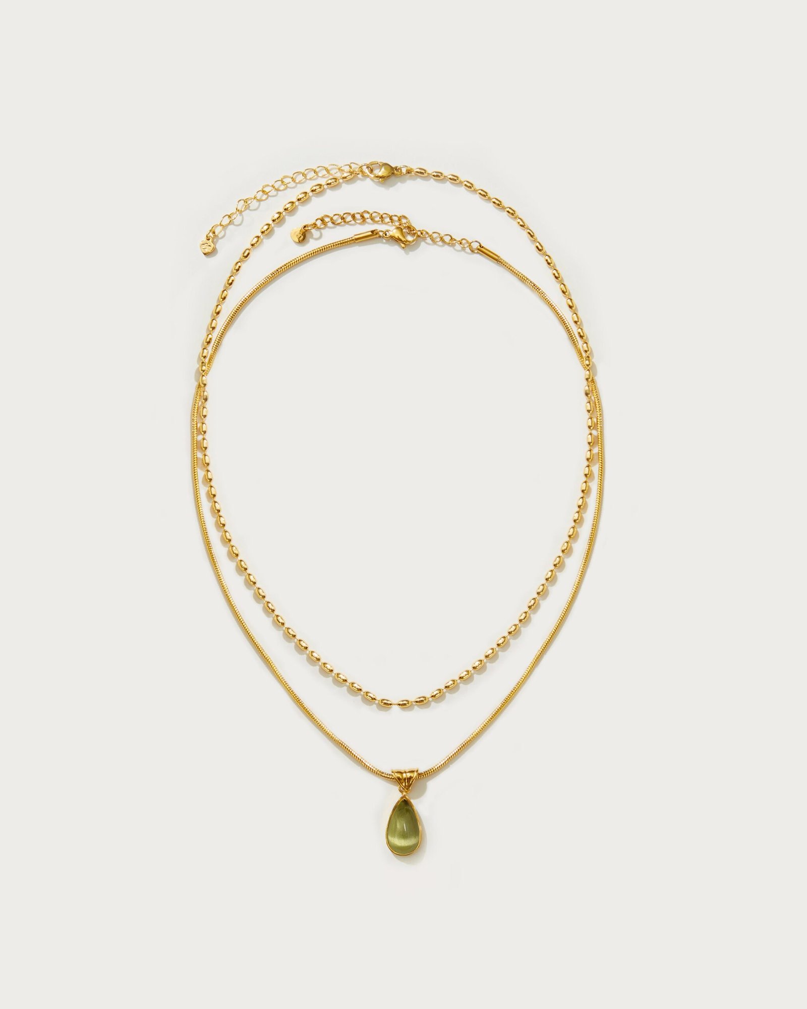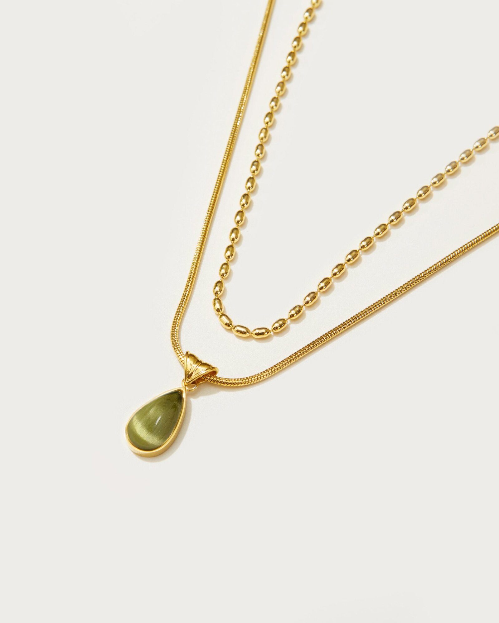- Waterdrop Necklace – 18k gold plated stainless steel. resin; Mini Metal Beads Necklace in Gold – 18k gold plated stainless steel
